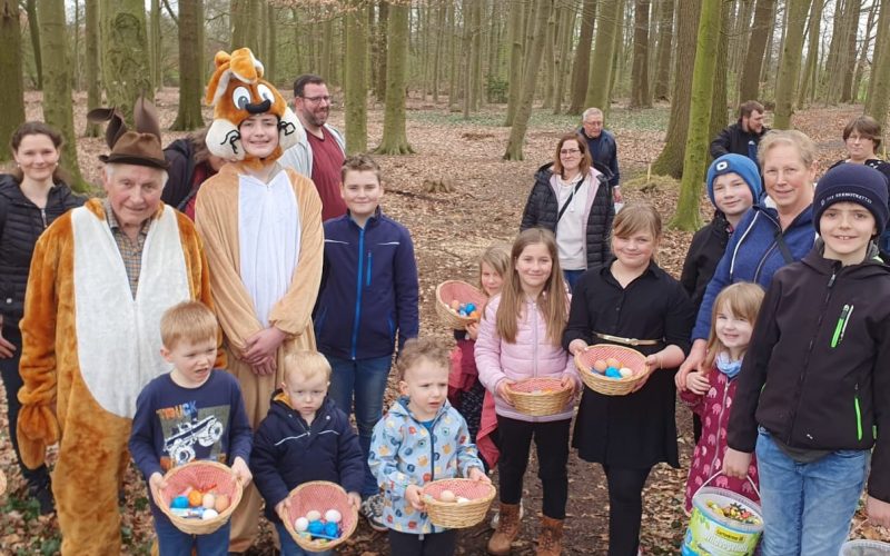 Osterhasen Gerd und Tom führten über 100 Kinder in den Osterhasenwald und suchten über 500 Natureier und etlichen Schokoeier.